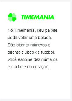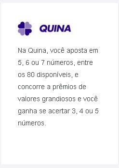 | Quantidade de números | Permite Bolão | Quantidade mínima de cotas para Bolão | Quantidade máxima de cotas para Bolão | Valor Mínimo da Cota | Valor Mínimo do Bolão | Valor Máximo do Bolão |